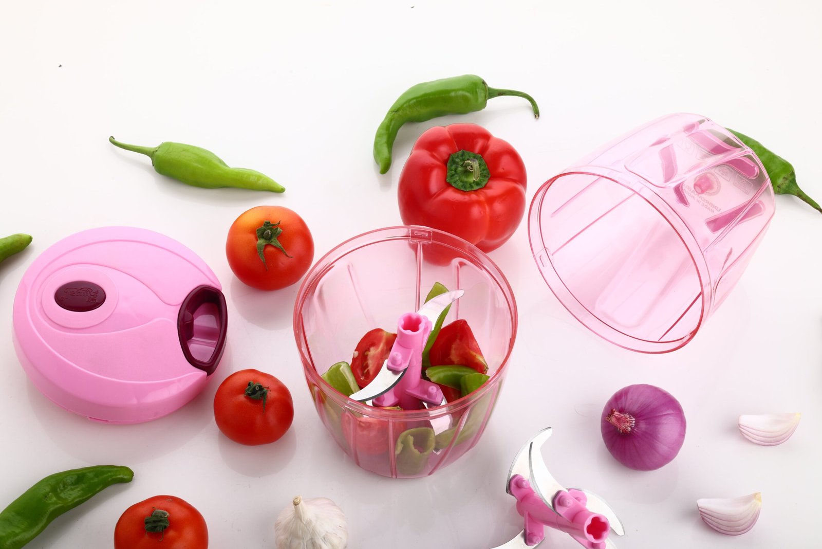 Simply add your ingredients to the unbreakable container, secure the easy-lock lid, and give the string a pull. Sharp blades rotate, chopping your fruits, vegetables, nuts, or herbs to your desired consistency.
